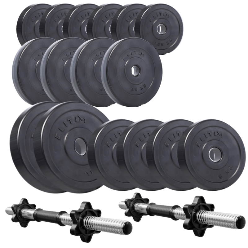 Набір Elitum 59 кг - це універсальний спортивний снаряд для повноцінних силових тренувань в домашніх умовах. Склад набору підібраний з урахуванням рекомендацій професійного тренера, як оптимальне поєднання необхідної ваги та кількості дисків. Набір дозволяє найкращим чином тренувати всі необхідні групи м'язів, і дати їм максимально ефективне навантаження. З набором Elitum ви зможете поліпшити фізичну форму і стан здоров'я, наростити м'язову масу, підвищити витривалість і зміцнити серцево-судинну систему. Набір складається з дисків, покритих ABS-пластиком, і хромованого грифа. Висока якість виготовлення і довговічність деталей гарантує, що ваші тренування з даним набором будуть проходити комфортно, безпечно і з максимальною користю.