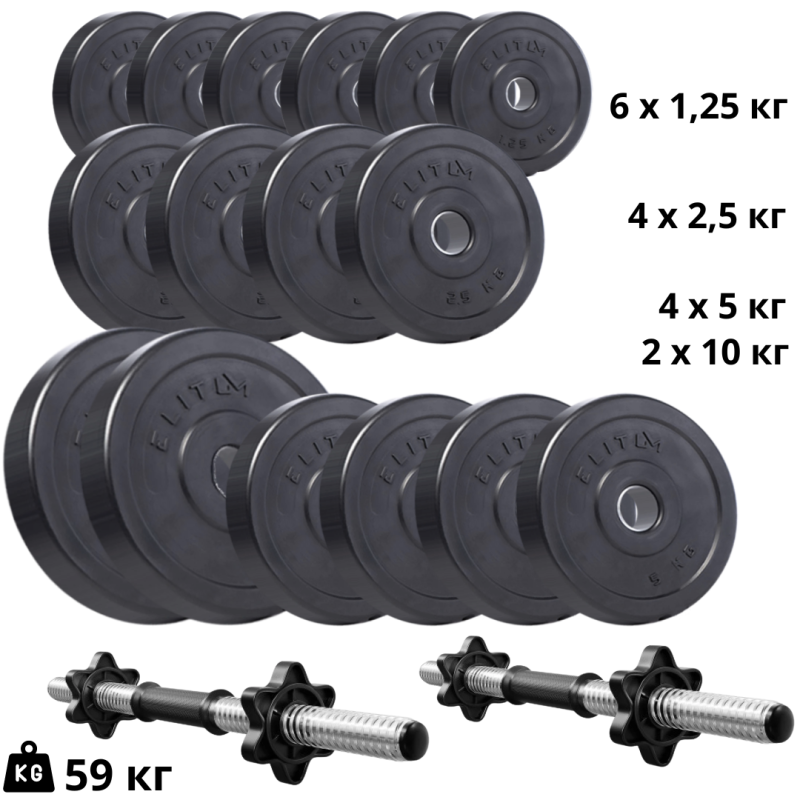 Набір композитних дисків Elitum Titan 59 кг для гантелей та штанг + 2 грифа