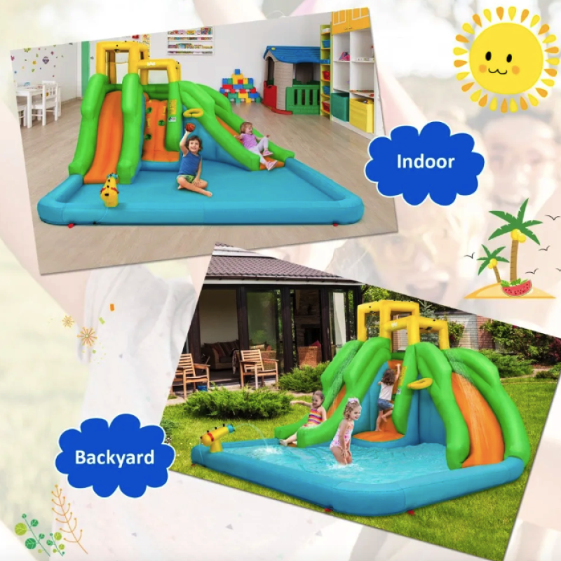 Надувний Аквапарк Costway Merlin з двома гірками (без вентилятора)