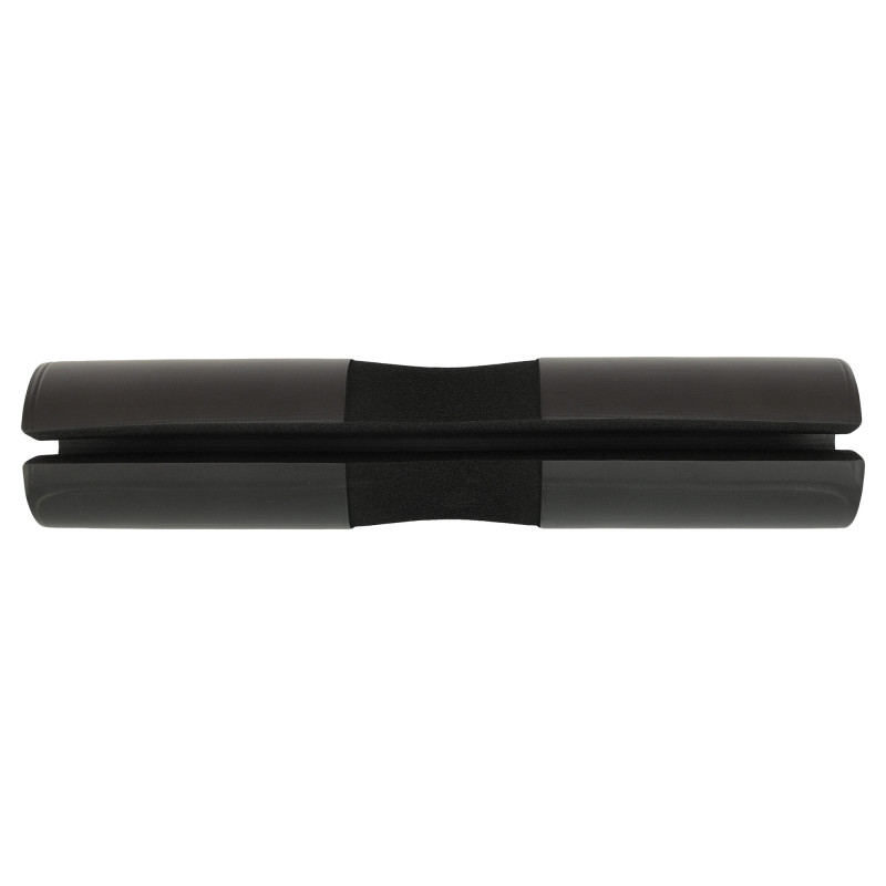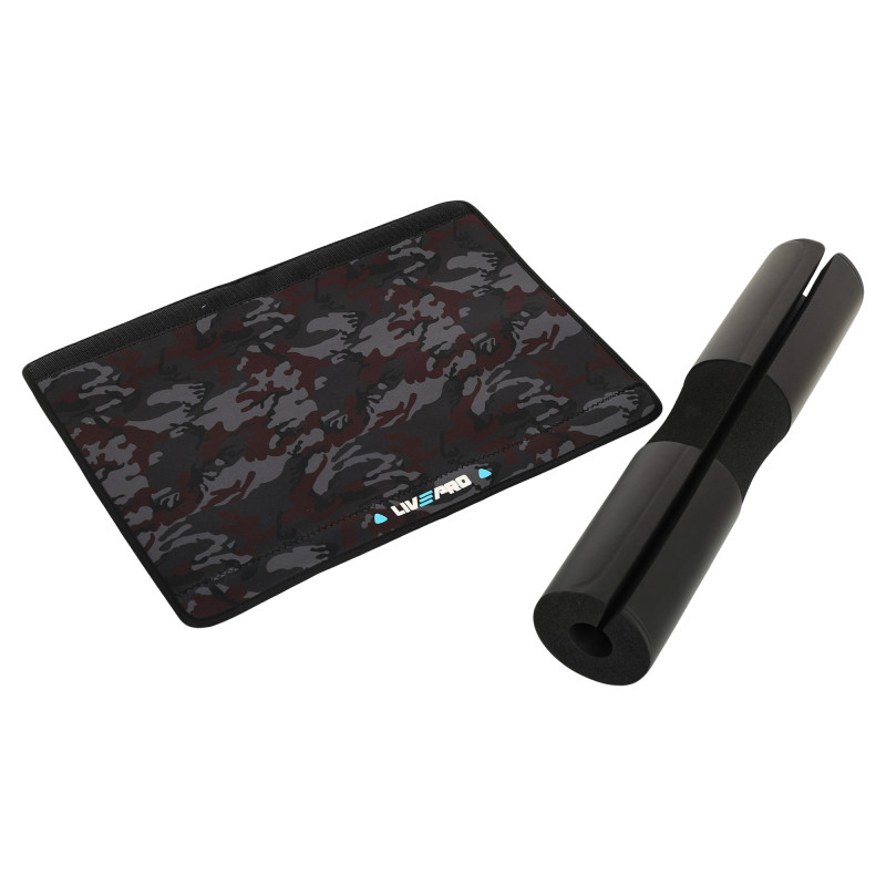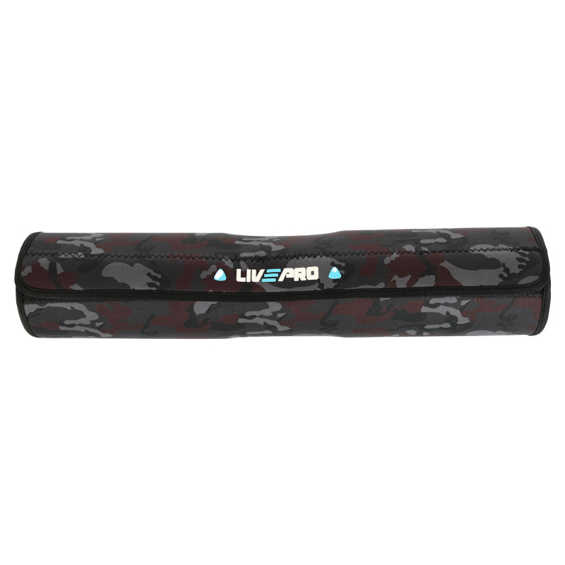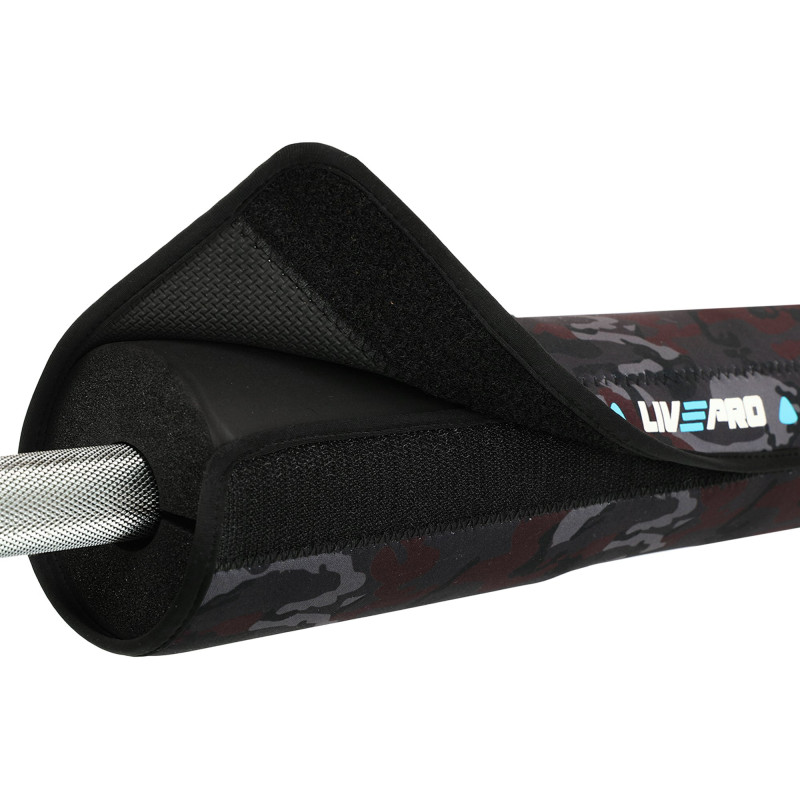 Накладка на гриф штанги від бренду LiveUp дозволить уникнути неприємних відчуттів під час присідань чи інших вправ зі штангою. Накладка має спеціальну довгасту форму і легко одягається на гриф. Як матеріал обшивки використовується поліестер. Він має високу міцність. Розмір накладки відповідає зоні, на яку припадає максимальний тиск при заняттях зі штангою. Накладка виконана у класичному чорному кольорі та має діаметр 9 см. Усередині обшивки міститься матеріал, що амортизує, який пом'якшує тиск грифа на шию і плечі.
