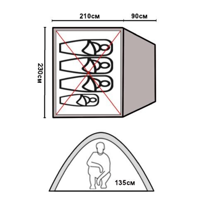 Тент: 190T поліестер з покриттям PU, що має водонепроникність 3000 мм.