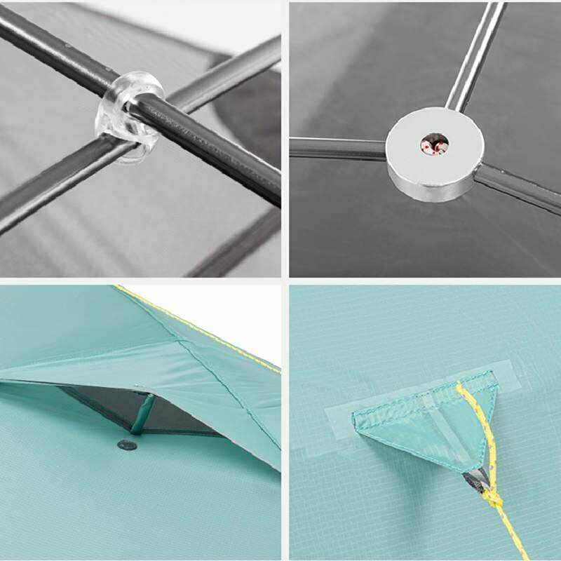 Намет розрахований на двох туристів. Вона зробить ваше перебування на природі більш комфортним. Ефективно захищає від дощових опадів. Добре провітрюється. Стійка і надійна конструкція. Колір намету - блакитний.