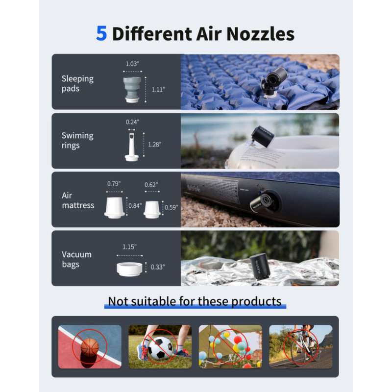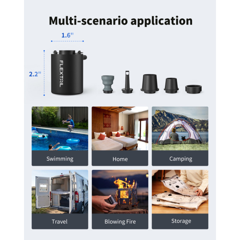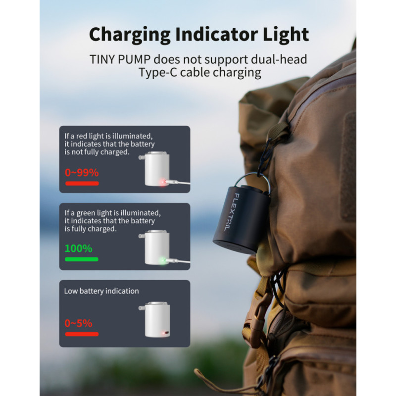 Акумуляторний насос Flextail Tiny Pump підходить для накачування та здування туристичних матраців, подушок, вакуумних пакетів тощо. Його також можна використовувати для розпалювання багаття.