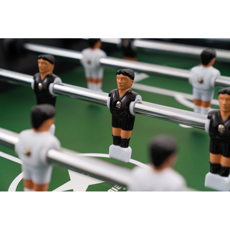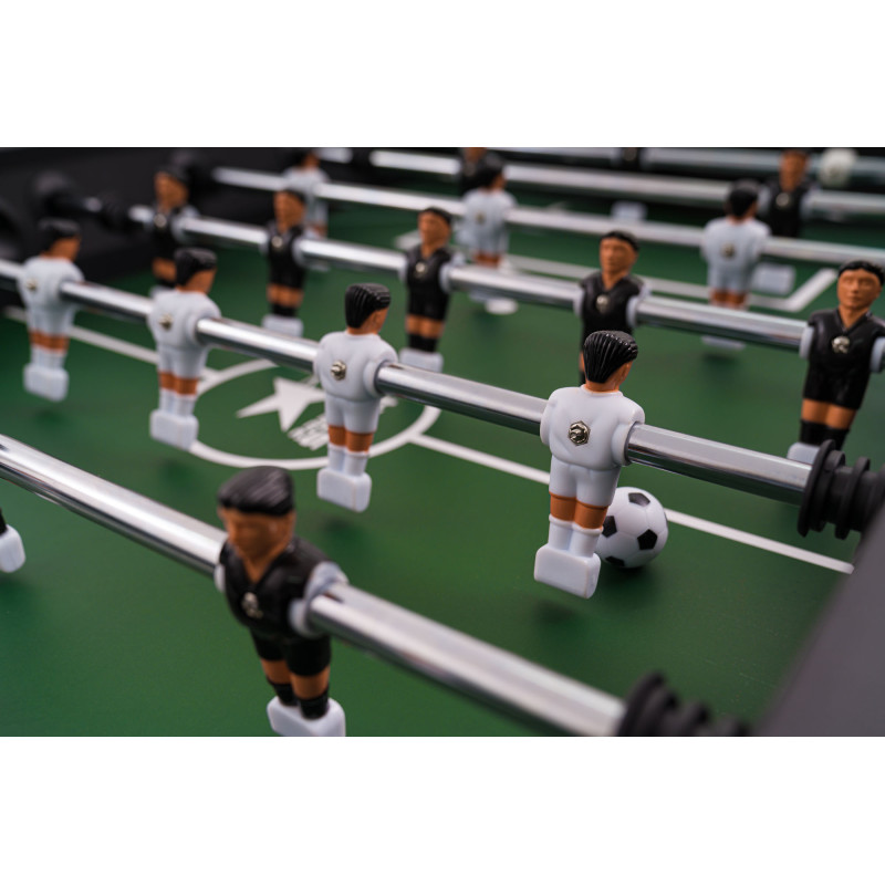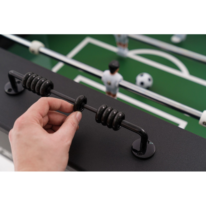 Ігрове поле - зеленого кольору - таке нейтральне покриття не відволікає гравців. Фігурки для настільного футболу виготовлені з якісного пластику і встановлені на міцних сталевих напрямних, оснащених спеціальними бамперами. У набір входять три м'ячі діаметром 36 мм.