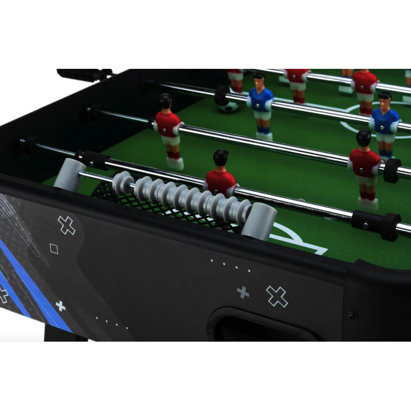 Виготовлений з якісної МДФ плити, покритої міцним ламінатом, настільний футбол Gamma Outtec забезпечує довготривале використання та легкість у догляді. Так ви можете насолоджуватися грою роками. Ігрове поле з піднятими кутами забезпечує плавну гру без зупинок м'яча в мертвих зонах. Купуйте настільний футбол Gamma Outtec і насолоджуйтесь якістю на багато років!