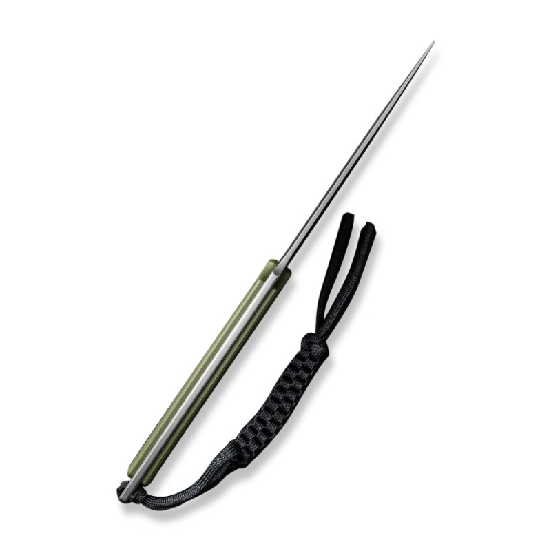 Вигнутий контур руківʼя підвищує якість утримання. Цьому також сприяють дві текстуровані плашки зі склопластику G10. У ножі передбачена захисна гарда та отвір для темляка. Загострений кінчик руківʼя можна використовувати як склобій.