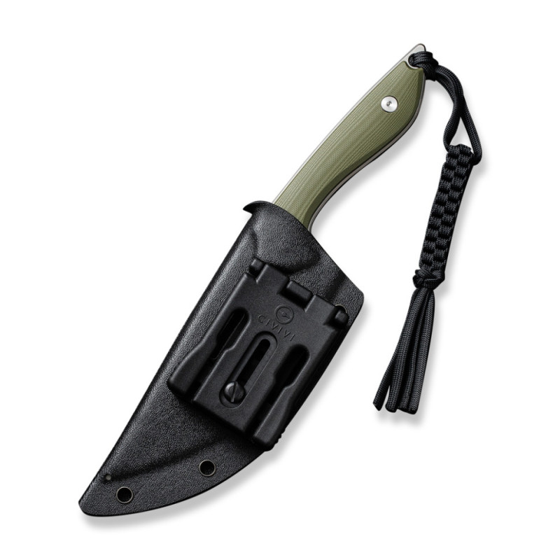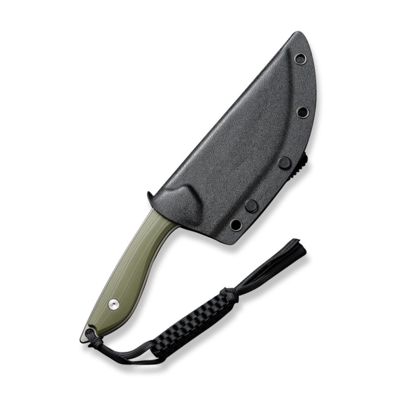 Крім ножа вагою 200.9 грамів комплект постачання включає темляк з переплетеного паракорду та піхви з кайдекса. Дизайнер Боб Терзуола (Bob Terzuola) спроектував затискач у піхвах, який забезпечує гранично щільну та надійну фіксацію на поясі.