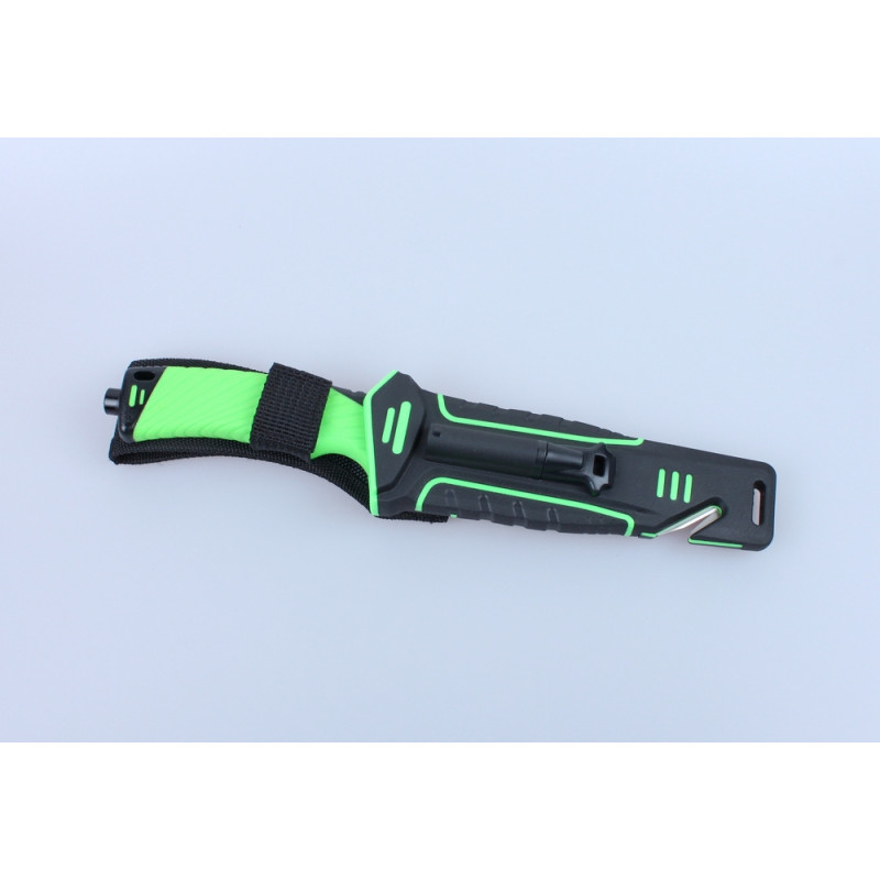 По відношенню до рукоятці лезо жорстко зафіксовано. Сама ж ручка зроблена з термопластику, відомого під назвою ABS. Цей матеріал одночасно легкий і міцний, зручний для використання при різній погоді протягом усього року. Щодо кольори рукоятки для Ganzo G8012, виробники пропонують два варіанти: чорний з оранжевим і зелений з чорним.