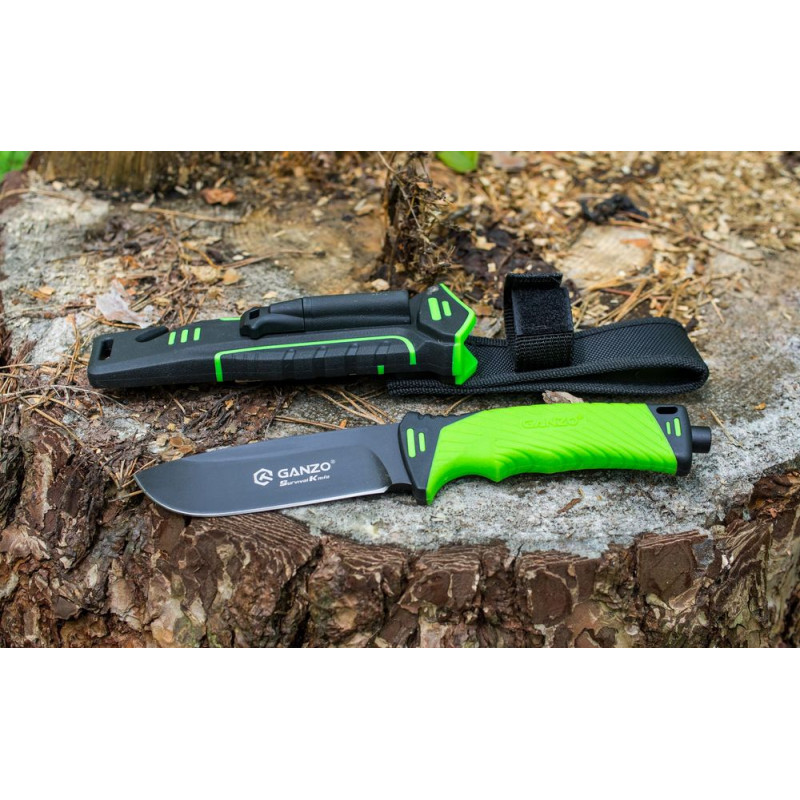 Модель Ganzo G8012 – це сучасний ніж для справжніх «вижівальників». Він передбачає всі ті моменти, які стають актуальними тоді, коли ми безпосередньо стикаємося з необхідністю використовувати ніж в екстремальній ситуації. Виготовлений Ganzo G8012 з нержавійки. Це сплав 7Cr17, відомий хорошим поєднанням стійкості до корозії і твердості загартування. Незважаючи на те, що сплав не іржавіє, це не такий вже і м'який метал. Загартувати його можна до 57 HRC. Так що, Ganzo G8012 добре заточується і лише періодично вимагає підгострювання.