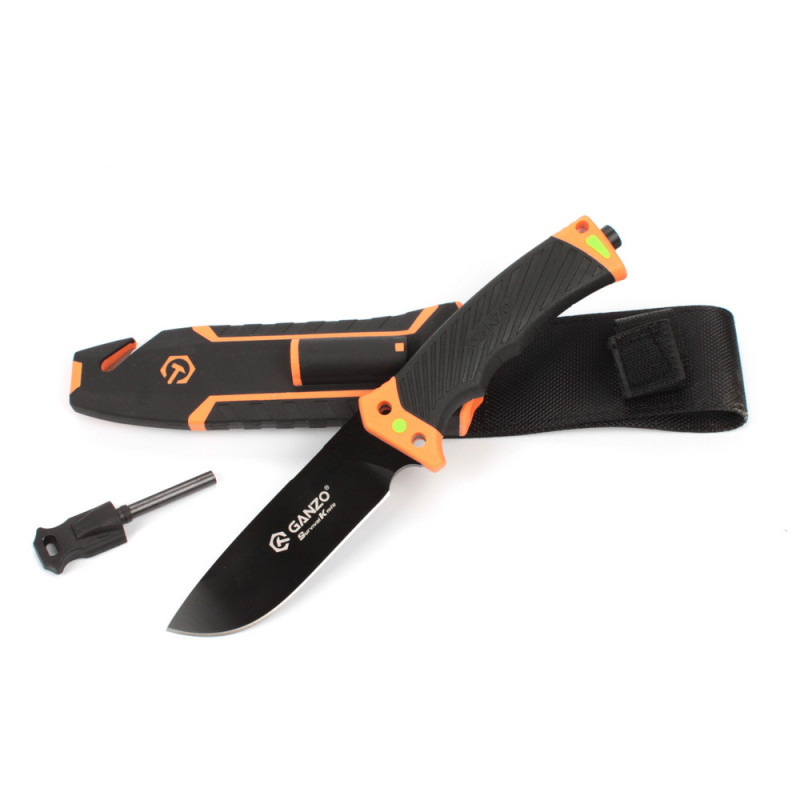 Простий і надійний туристичний ніж Ganzo G803 з фіксованим клинком відмінно підійде для активного відпочинку на природі. Він досить міцний для виконання різних трудомістких завдань і довго залишається гострим. Ці особливості обумовлені застосуванням для виготовлення клинка нержавіючої сталі марки 8Cr13 і його подальшої загартування до ~58 HRC.
