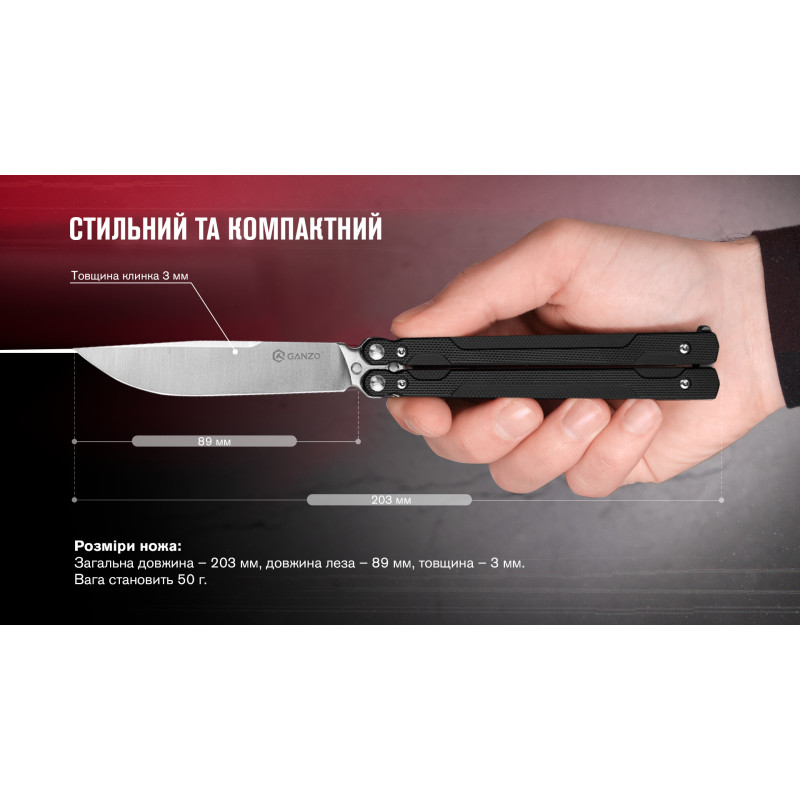 Нiж-метелик (балiсонг) Ganzo G766-BK