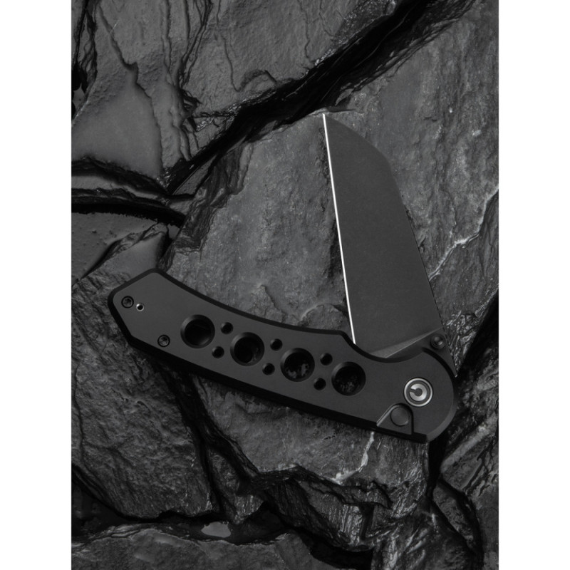 Дрібні елементи конструкції, зокрема штифт, гвинти та знімна кліпса на кишеню, виготовлені з нержавіючої сталі. Скелетонізоване руківʼя з безліччю наскрізних отворів різного діаметра знижує вагу конструкції до 98.9 г та слугує яскравим елементом дизайну.