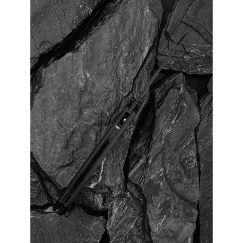 - Клинок зі сталі 14C28N відрізняється відмінною корозійною стійкістю, твердістю 57–59 HRC та стабільною утримуваністю гостроти леза. Поверхня оброблена методом галтування для матовості. Чорне покриття посилює захист від вологи.