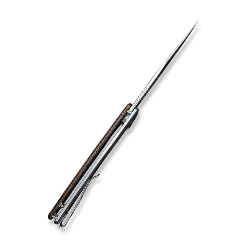 У складаному ножі Civivi Sinisys C20039-2 поєднується лаконічний дизайн, характерний для класичних EDC моделей, та функціональність, якій інструмент зобов'язаний клинку форми clip point. Скошений обух моделі в напрямку до вістря наділяє ніж підвищеною проникаючою здатністю, при цьому довжини клинка 94 мм достатньо для здійснення точних надрізів.