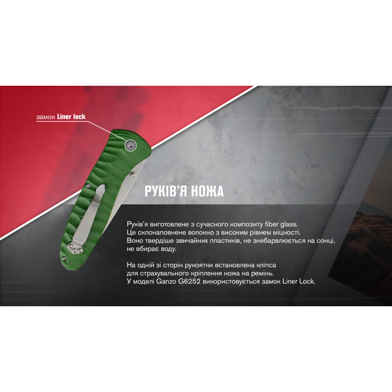 Гарантія: Для покупців ножів Ganzo G6252, гарантія оформляється на 12 місяців.