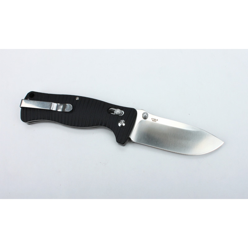 Складаний ніж Ganzo G720 в складеному стані має довжину всього 12 см, тому легко поміститься в кишені. Клинок цього ножа отримав заточку прямого типу. Його довжина становить 9 см, товщина з боку обуха — 0,4 див. В якості матеріалу для ножа виробники вибрали стійкий до корозії хромистую сталь марки 440С. Ножі з такої сталі легко заточуються і довго залишаються гострими. Твердість клинка в моделі ножа Ganzo G720 оцінюється в межах +- 58HRC.