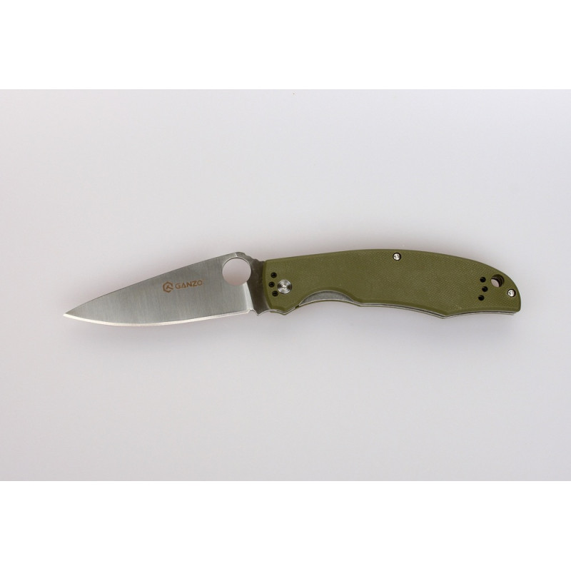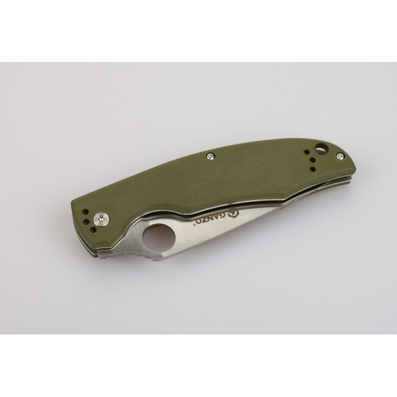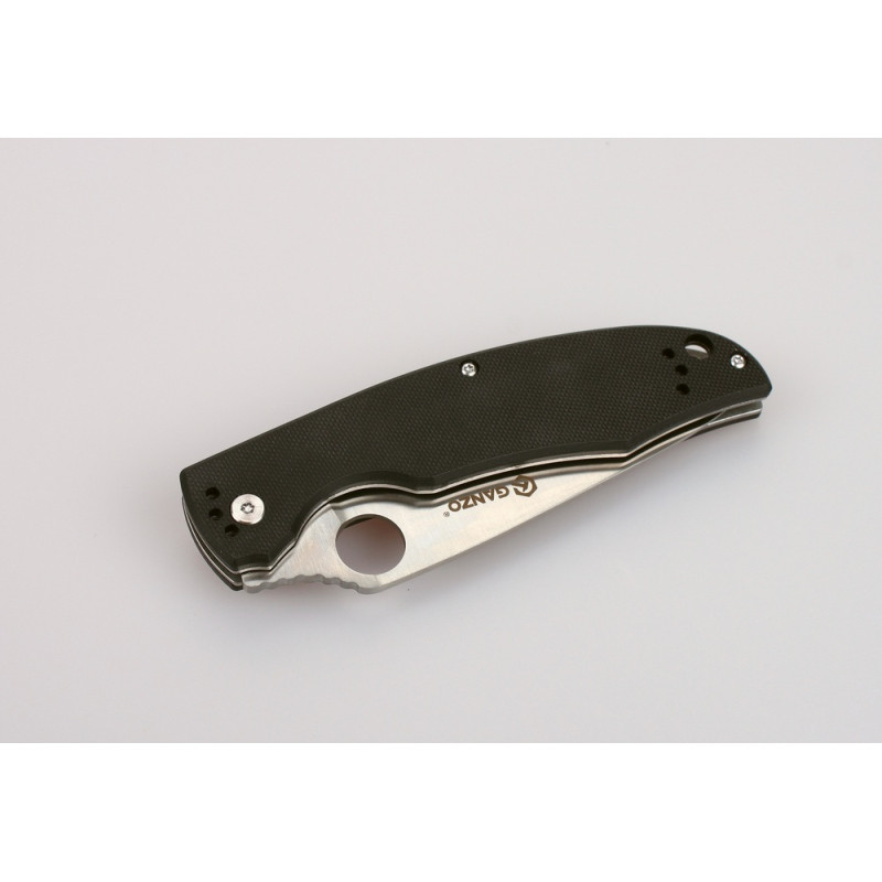 Клинок в моделі Ganzo G732 отримав довжину 95 мм і товщину 0,33 див. До рукоятці він стає значно ширшим. А біля основи леза, ближче до обуха, розташовується отвір, що грає роль шпенька для відкривання ножа. Щоб Ganzo G732 можна було використовувати в максимальній кількості ситуацій, лезо універсально заточене — гладко.