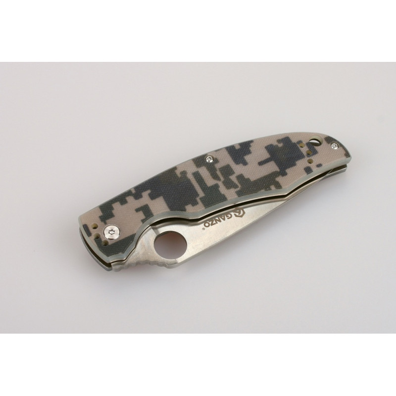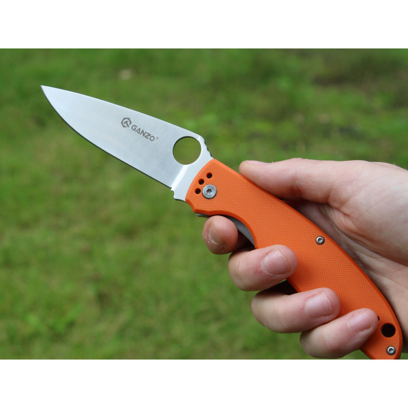 В руках Ganzo G732 лежить дуже комфортно, завдяки грамотному вибору матеріалу для рукоятки та її форми. Накладки виготовлені з композиту на основі скловолокна і епоксидної смоли. Такий матеріал називається G10 і широко використовується для виробництва ручок для ножів. Він дуже пластичний і міцний, завдяки чому ручки виходять ергономічними і довговічними. Що стосується кольору, то покупці за власним розсудом можуть вибирати між чорним, зеленим, оранжевим і камуфляжним варіантами.