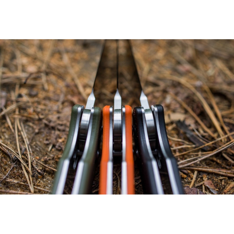 Повна довжина ножа становить 23 см, але щоб носити Ganzo G740 було зручніше, лезо складається всередину рукоятки. Дістати його можна за допомогою шпенька. А щоб ніж не міг відкритися або скластися без відома користувача, у нього вбудований замок Axsis.