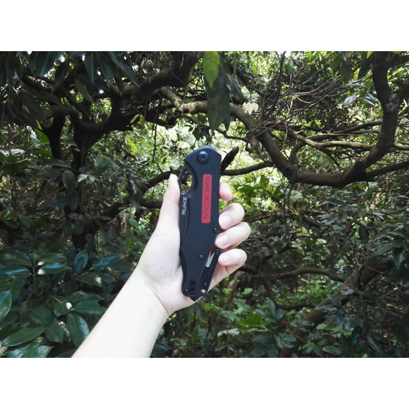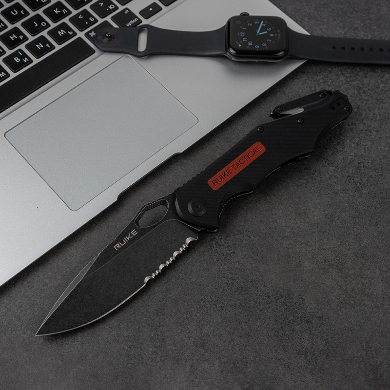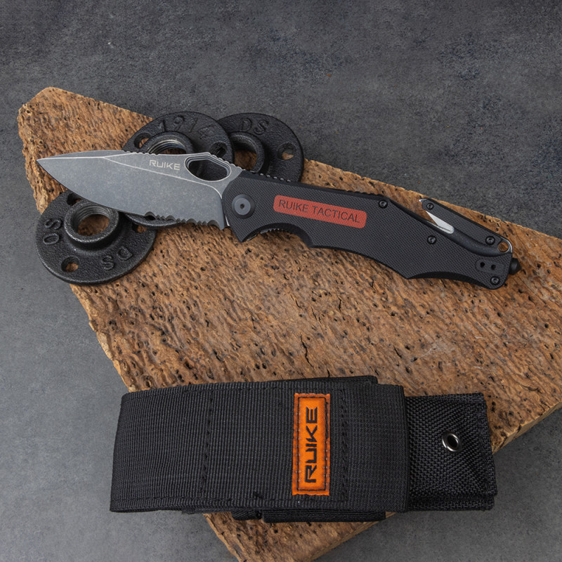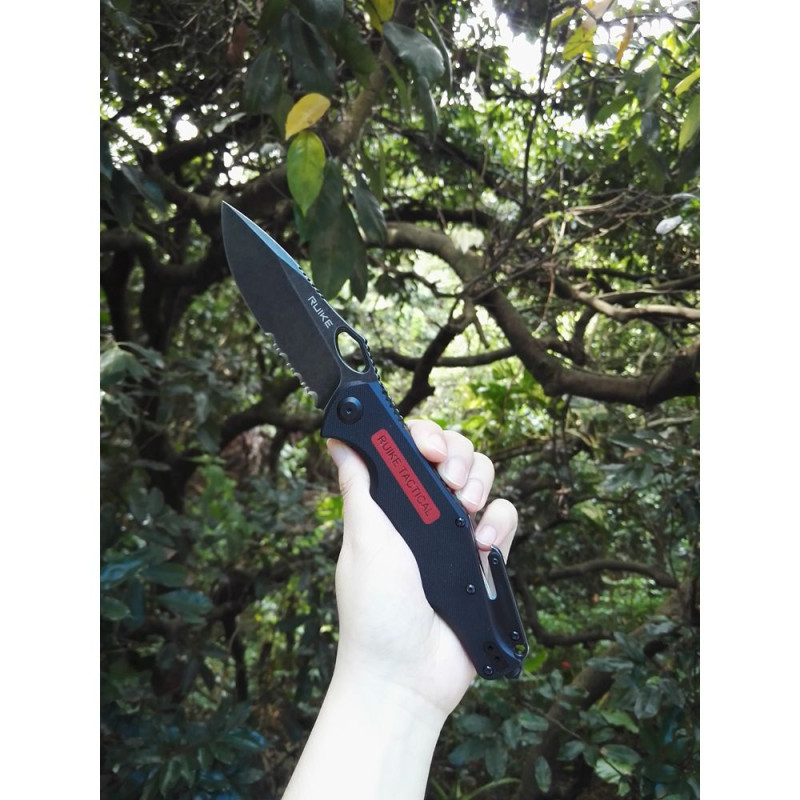 Модель Ruike M195 являє собою перший тактичний ніж виробника. Багатофункціональний складаний ніж, який характеризується кількома особливостями. По-перше, це симетричний клинок різновиди drop point, зроблений із сталі марки D2 твердістю порядку 60-61 одиниць по Роквеллу. Метод обробки леза – галтування. D2 це високовуглецева высокохромистая інструментальна сталь, забезпечує утримання кромки і твердість, а також більш стійка до корозії, ніж інші високовуглецеві сталі.