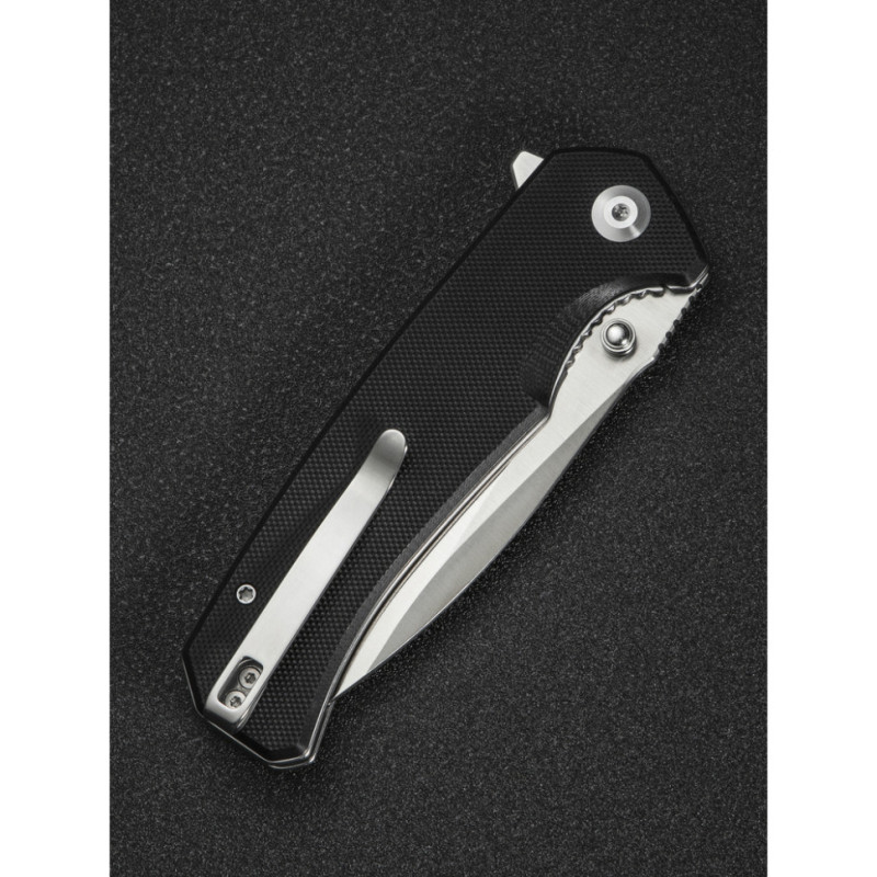 Ніж Sencut Skarnax оснащений сталевою кліпсою, адаптованою під різні стилі носіння і використання правшами та шульгами. Затискач є двопозиційним з можливістю кріплення з будь-якого боку руківʼя.