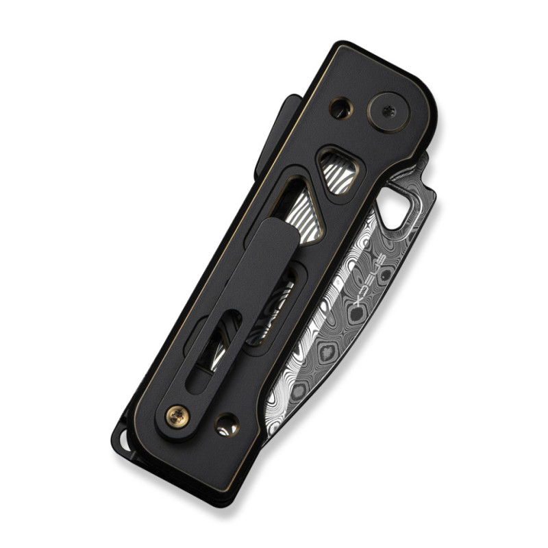 На руківʼї є багатопозиційна кліпса з титану 6AL4V. Її можна кріпити з правого або лівого боку руківʼя та фіксувати в положенні вгору або вниз, розширюючи варіанти носіння інструмента в кишені. У хвості також передбачено отвір для страхувального темляка або декоративного паракорду.