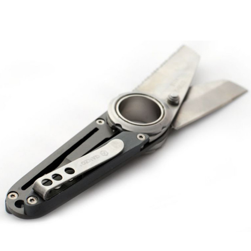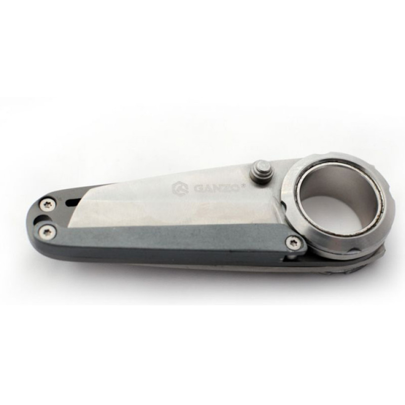 Один з найбільш незвичайних доладних ножів у виробничій лінійці компанії Ganzo. По-перше, модель G706-2 має оригінальний, трохи футуристичний дизайн. По-друге, складаний ніж G706-2 має два леза, які відкриваються в різні боки. Одне лезо має серрейторную заточку, а друге – пряму, що перетворює ніж G706-2 у своєрідний інструмент, який здатний виконувати більш широке коло завдань, ніж звичайні складні ножі.