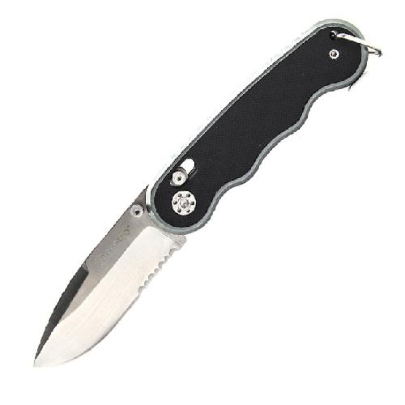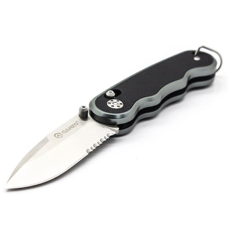 Невеликий складаний ніж G715 від компанії Ganzo. Модель G715 має елегантний дизайн і прекрасно підійде для щоденного носіння. Лезо моделі G715 виконано з нержавіючої сталі 440С, яка чудово тримає заточку і має твердість 58-60 одиниць за шкалою Роквелла. Накладки рукоятки виготовлені із спеціального матеріалу G10, який дозволяє впевнено утримувати ніж (навіть жирними і мокрими руками). Для фіксації леза у відкритому положенні використовується замок Axis Lock. Невеликі маса і розміри ножа роблять його ідеальним супутником в міських умовах.