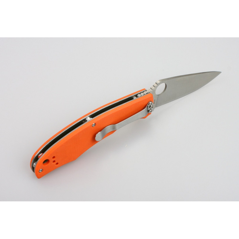 В руках Ganzo G732 лежить дуже комфортно, завдяки грамотному вибору матеріалу для рукоятки та її форми. Накладки виготовлені з композиту на основі скловолокна і епоксидної смоли. Такий матеріал називається G10 і широко використовується для виробництва ручок для ножів. Він дуже пластичний і міцний, завдяки чому ручки виходять ергономічними і довговічними. Що стосується кольору, то покупці за власним розсудом можуть вибирати між чорним, зеленим, оранжевим і камуфляжним варіантами.