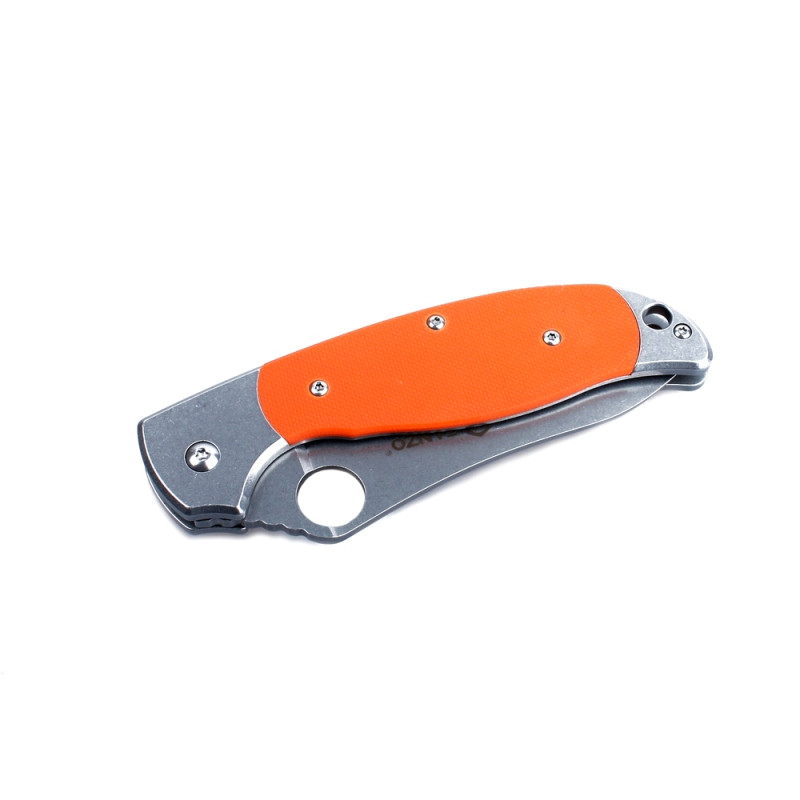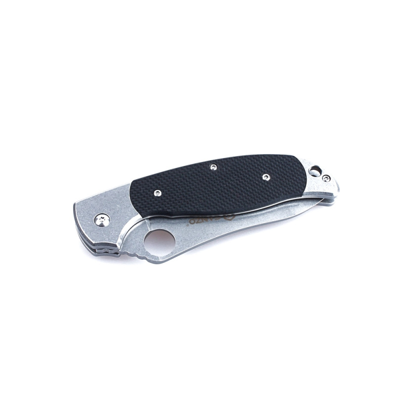 Основна частина ножа — це його лезо. Для його виробництва використовується сталь 440С. Вона не іржавіє, але володіє достатньо високою твердістю, щоб ніж було зручно використовувати для туристичних цілей і не потрібно занадто часто заточувати. Поверхня клинка не блищить у променях, так як відшліфована за технологією Stone Wash. Оброблений таким чином клинок виглядає досить незвично, а подряпини, які неминуче з'являються при використанні, на цьому клинку видно набагато менше. Ще один незвичайний елемент — це отвір на лезі. Воно потрібно, щоб відкрити складений клинок, взявшись за нього пальцями.