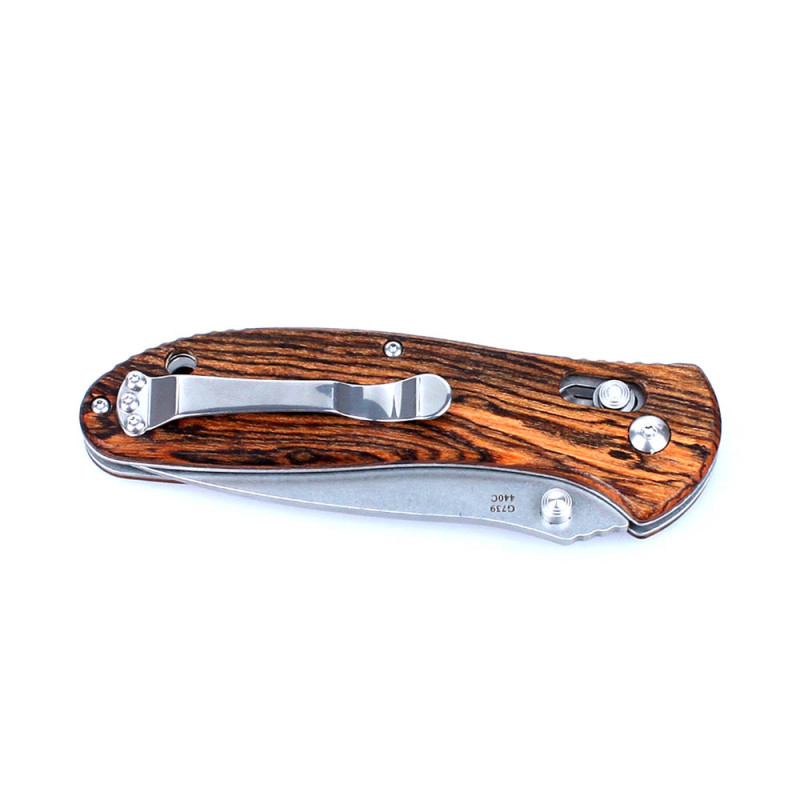 Ніж G7392-WD1 — одна з практичних туристичних моделей. Він зроблений складним, а тому без проблем поміститься в будь-яку кишеню похідного рюкзака. Розмір клинка в даній моделі — 8,7 див. Але з його допомогою зручно готувати в поході їжу, виконувати деякі ремонтні або підсобні роботи. Та й у місті такий ніж буде корисний. Його клинок зроблений нержавіючим, для чого використовується сталь 440С. Це популярна бюджетна марка з хорошими робочими характеристиками. Її твердість оцінюється в 58HRC, завдяки чому ножі з такої сталі довго залишаються гострими. У догляді вона практично не потребує, але після протирання використання насухо допоможе довше зберігати для ножа гарний зовнішній вигляд. Клинок у G7392-WD1 відшліфований до стану матової поверхні. Ця технологія називається Stone wash. Ріжуча кромка заточена класичним методом — гладко. Так що ніж легко розріже як продукти харчування, так і самі тверді матеріали.