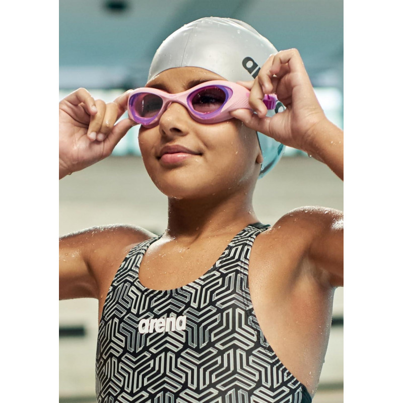 Універсальна посадка на будь-який тип обличчя за рахунок гнучкої оправи з термопластичної гуми. Ущільнювач відрізняється унікальною формою, побудованою на основі анатомічних особливостей людської особистості. Лита перенісся сама підлаштовується під форму носа. Роздвоєний силіконовий ремінець із бічними кліпсами. Вигнута форма лінз дає широкий огляд. Лінзи оброблені складом anti-fog, що запобігає їх запотіванню під час плавання. Дітям віком 6-12 років.