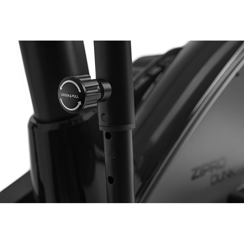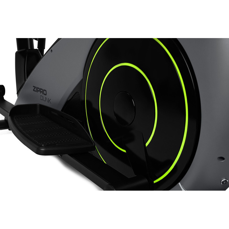 Еліптичний тренажер Dunk Zipro використовує маховик вагою 12 кг і має систему магнітного опору. Працює плавно, тихо і відрізняється безвідмовною роботою. Зручність управління навантаженням гарантується широким діапазоном регулювань. Він працює безперебійно та управляється електронним способом з комп’ютера.
