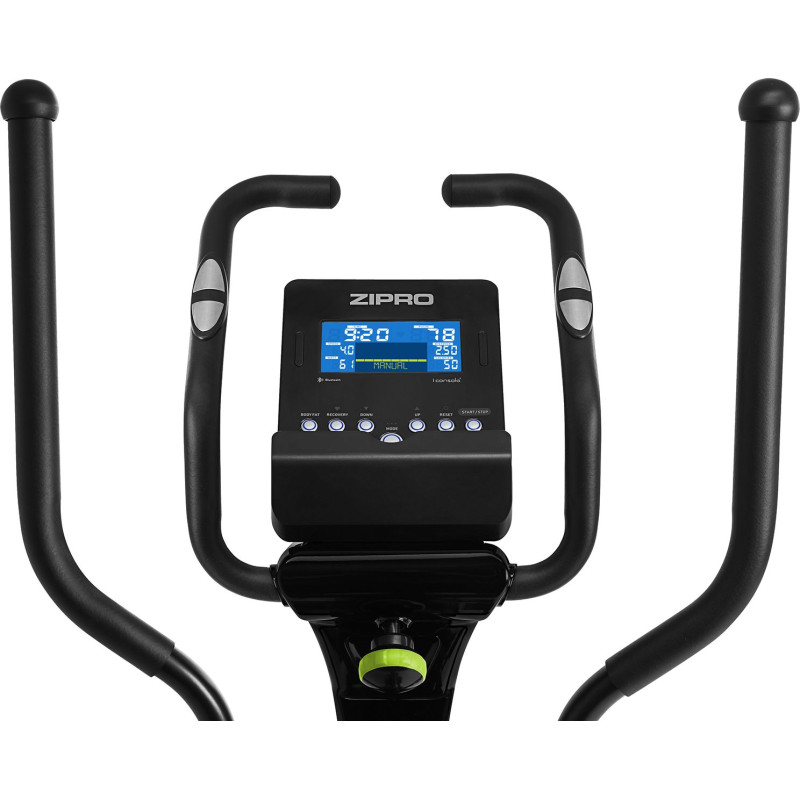Еліптичний велосипед Dunk Zipro оснащений сучасним комп'ютером з екраном з блакитним підсвічуванням. Працює з мобільним додатком iConsole+ і точно вимірює дані про тренування. Він вимірює час тренування, швидкість, пройдену відстань, спалені калорії, оберти за хвилину (RPM) і записує пульс, виміряний сенсорними датчиками, розміщеними на ручках. Він також відображає поточну потужність (ват) і вибрану програму.