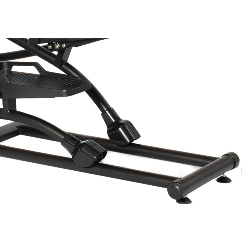 Після тренування вам не потрібно турбуватися про те, що ваш дім все одно буде виглядати як тренажерний зал. З переду обладнаний міцними ніжками, які забезпечують всьому пристрою надійність та стійкість під час інтенсивних тренувань. Додатково ніжки споряджені спеціальними регуляторами, що забезпечують баланс орбітрека навіть на нерівних поверхнях. А для того, щоб ви могли максимально комфортно та без зайвих зусиль переміщати тренажер у будь-яке зручне місце.