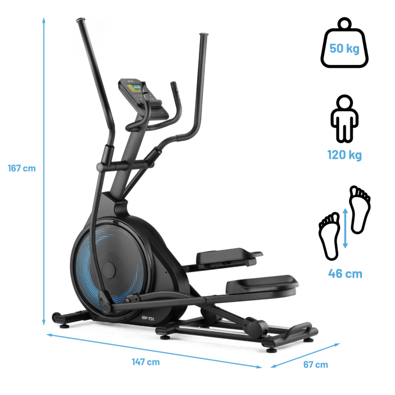Електромагнітний еліптичний тренажер XCF5000 Gymtek - це не просто тренажер, це ваш ключ до здоров'я, фітнесу та гармонії тіла. Поєднання сучасних технологій, комфорту та продуманого дизайну робить цей магнітний еліптичний тренажер ідеальним вибором для дому. Передній привід забезпечує плавний і природний рух, а система Quiet Motion System гарантує тиху роботу, створюючи затишну атмосферу для ваших тренувань у будь-який час дня.