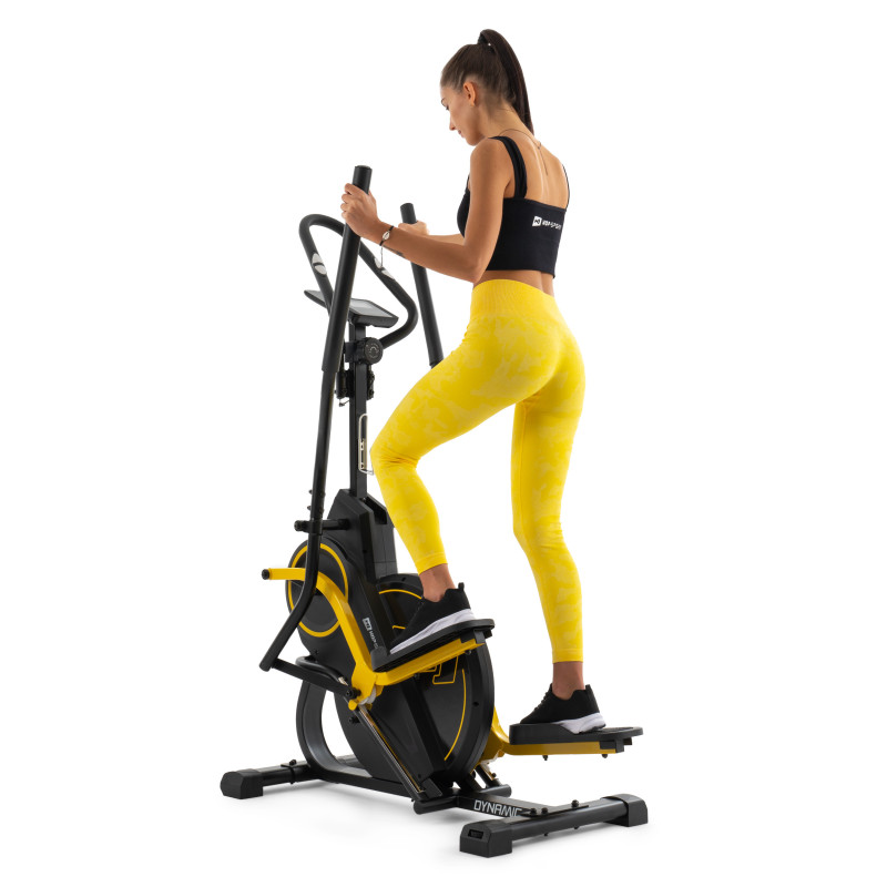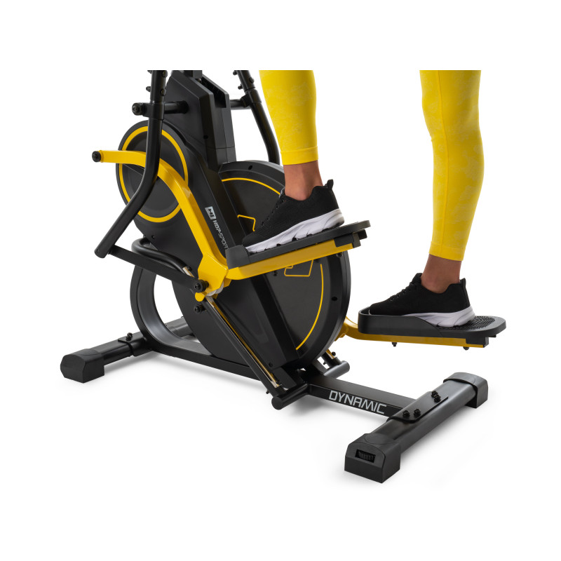 Ви любите займатися на орбітреку? Ви не можете уявити тренування без степпера? Поєднайте обидві види діяльності з еліптичним орбітреком Dynamic і подивіться, які великі можливості надає вам цей тренажер! Він використовує інноваційну систему педалей, яка дозволяє рухати ногами як вперед, так і назад. Таким чином ви задієте додаткові групи м'язів і зробите ноги стрункішими.