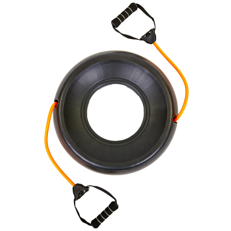 База для еспандерів являє собою конструкцію округлої форми, виготовлену з міцного матеріалу. Ця конструкція дає змогу стабілізувати становище кулястого м'яча і запобігає його зміщенню з місця. Завдяки придбанню такого виробу ви зможете використовувати фітбол як динамічне сидіння, оскільки він не буде перекочуватися з місця. На базі є накладки, які перешкоджають її ковзанню і захищають підлогове покриття від пошкоджень. Також база укомплектована двома еспандерами, які кріпляться до неї легким рухом. Еспандери мають зручні нековзні ручки та оптимальну довжину.
