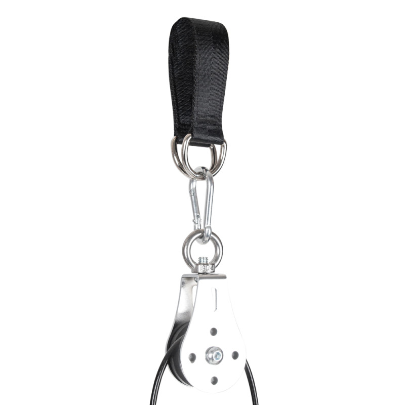 Підвісне колесо inSPORTline Puley 100 - це ефективний засіб для зміцнення в домашніх умовах. За допомогою цього багатофункціонального шківа можна тренувати багато груп м'язів верхньої половини тіла - плечі, спину, біцепси, трицепси, м'язи грудей і преса. Шків пропонує дуже компактне рішення для домашніх вправ, просто повісьте його на штангу , або на вушко, або на тримач на стелі чи стіні, завантажте вагу, і ви можете зміцнити. Гумовий упор на кінці троса захищає конструкцію від пошкоджень у разі раптового звільнення або вислизання ручки з долоні.