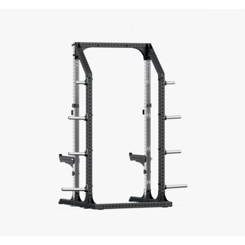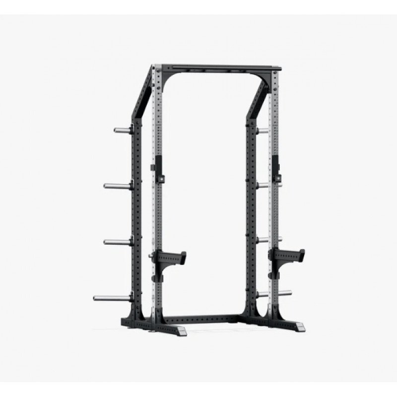 Конструкція попередньо оснащена ключовими аксесуарами, які дозволяють одразу розпочати повноцінні силові тренування. У комплект входять турнік для підтягувань, J-гачки для штанги з роликами, страхувальні опори та вісім тримачів для дисків, що забезпечують зручне та компактне зберігання вагових дисків.