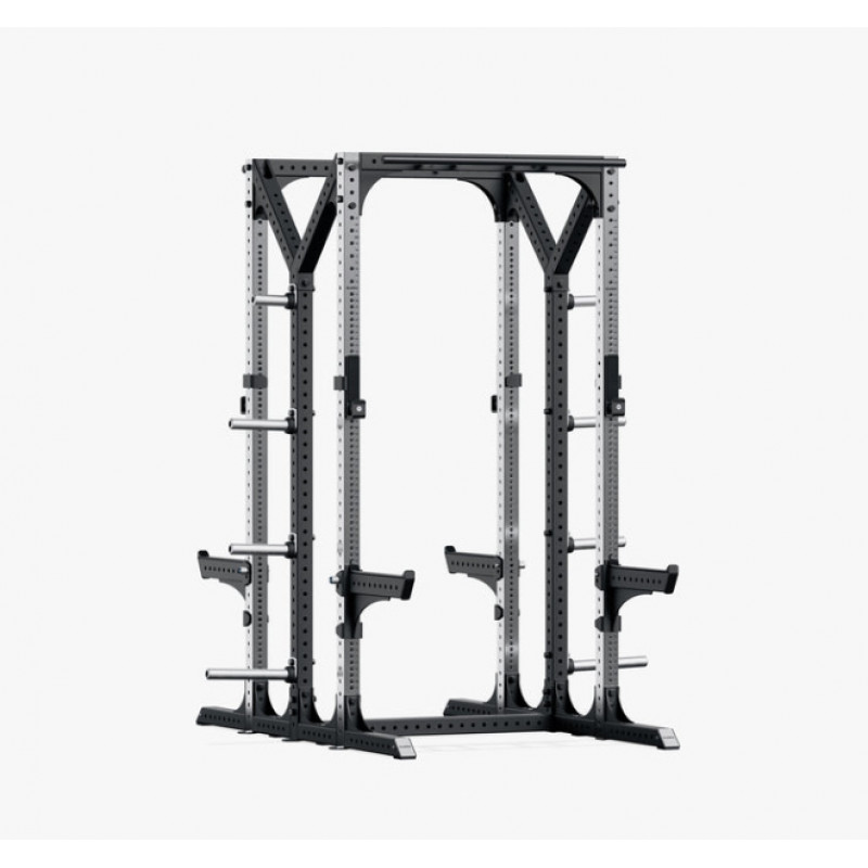 Вертикальні стійки виготовлені з міцної нержавної сталі, що забезпечує високу надійність та довговічність обладнання. Особливістю конструкції є щільна сітка регулювальних отворів із кроком 25 мм, яка дозволяє максимально точно налаштовувати висоту встановлення штанги та аксесуарів. Для зручності використання на стійках нанесена гравірована нумерація, що допомагає швидко знаходити необхідний рівень встановлення.