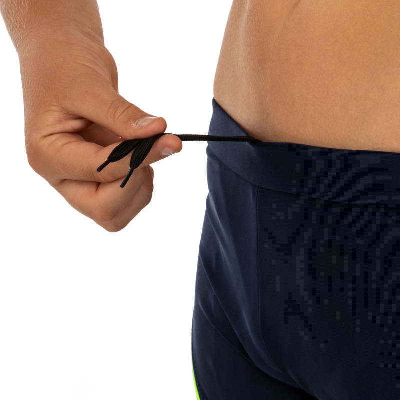 Еластичний пояс, оснащений шнурком, надійно фіксує плавки на талії, дозволяючи легко регулювати ступінь прилягання. Це особливо зручно для дітей, оскільки пояс забезпечує комфортну та щільну посадку незалежно від інтенсивності рухів у воді. Плавки не ковзають, не перекручуються, що дозволяє дитині зосередитися на плаванні, а не на постійному виправленні одягу.
