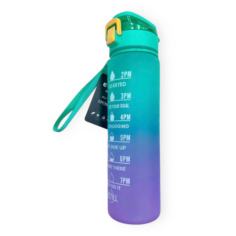 Пляшечка об'ємом 900 мл для зберігання рідин виготовлена з гіпоалергенного пластику. На бічну поверхню нанесена мірна шкала. У пляшечки широка кришечка на різьбленні, додатковий клапан на кнопці закриває мудштук. Пляшечка оснащена текстильним ремінцем.