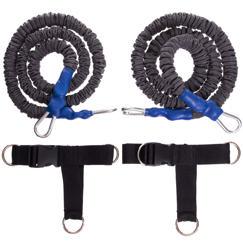 Повідець-амортизатор для ніг SP-Planeta Foot Training FB-3121 є компактним тренажером опору для ефективних швидкісних тренувань. Він складається з двох еластичних джгутів і лямок, що фіксуються на стопах за допомогою пластикового фастекса. Невеликі металеві карабіни на джгутах легко з'єднуються з D-подібними кільцями на лямках.