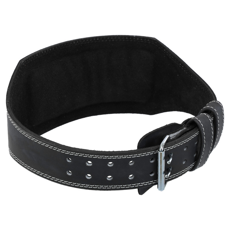 Шкіряний атлетичний пояс від бренду FISTRAGE дозволить займатися силовими видами спорту без зайвого ризику травмуватися. Ширина частини пояса, яка фіксує спину, становить 15 см. Така спинка забезпечує відмінну підтримку попереку. Для фіксації на тілі в поясі передбачена класична сталева пряжка. Пряжка набагато надійніша за липучку і точно не розкриється в найневідповідніший момент.