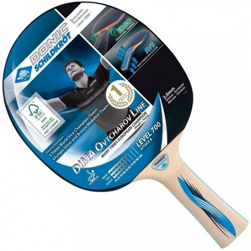 Ракетка Donic Ovtcharov Level 700 має високу швидкість та обертання при достатньому рівні контролю. П'ятишарова дерев'яна основа покрита гумовою накладкою товщиною 2 мм. Конічна ручка має ергономічний дизайн. У ракетці застосовано технологію гасіння небажаних вібрацій, що робить її гарним інструментом для відпрацювання точних ударів та техніки обертання.