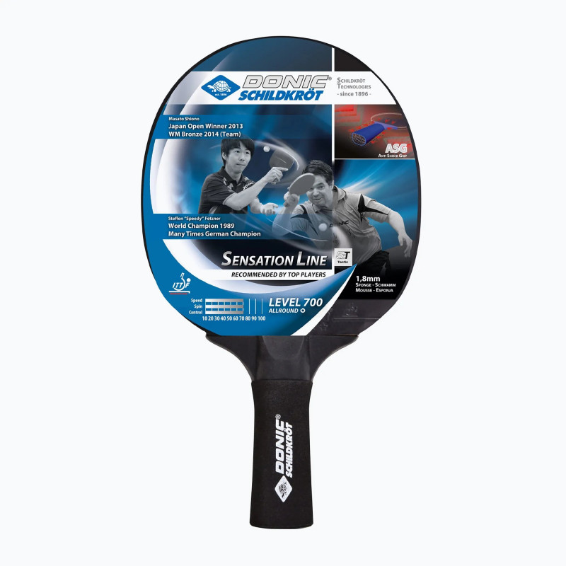 Ракетка для настільного тенісу Donic Sensation 700 — антиковзка рукоятка (anti-slip) у серії ракеток Sensation Line — це особлива концепція з привабливою функцією ASG (Anti Shock Grip). Це легкий і міцний вініл, що захищає руку від поту та вібрацій, призначений для надійного хвату та гри з більшим комфортом і кращою іграбельністю. Схвалена Міжнародною федерацією настільного тенісу ITTF. Ракетка рекомендується для провідних гравців.