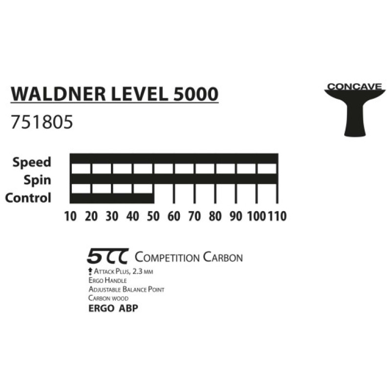 Тенісна ракетка Donic Waldner 5000 Carbon з ручкою ABP - тенісна ракетка для гравців професійного рівня, які прагнуть розвивати технічно складну гру із застосуванням різних технік кручення та максимальною швидкістю подачі м'яча. Підходить для атакуючих гравців із підвищеними вимогами.Лінійка ракеток найвищого рівня, присвячена Яну-Уве Вальднеру, легендарному спортсмену та багаторазовому чемпіону світу, розроблена спеціально для гри у нападі. У всіх моделях використовуються технології ABP - Adjustable Balance Point (ABP) - Точка рівноваги, що регулюється, що дозволяє гравцеві індивідуально змінювати центр тяжіння ракетки відповідно до свого стилю гри.
