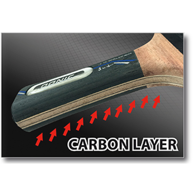 - Карбонові шари роблять ручку ракетки жорсткішою і збільшують зону найкращого сприйняття, виробляючи менше вібрацій і забезпечуючи більш високу базову швидкість. Відчуття під час гри значно жорсткіше і пряміше, в результаті виходить більша потужність та точність.