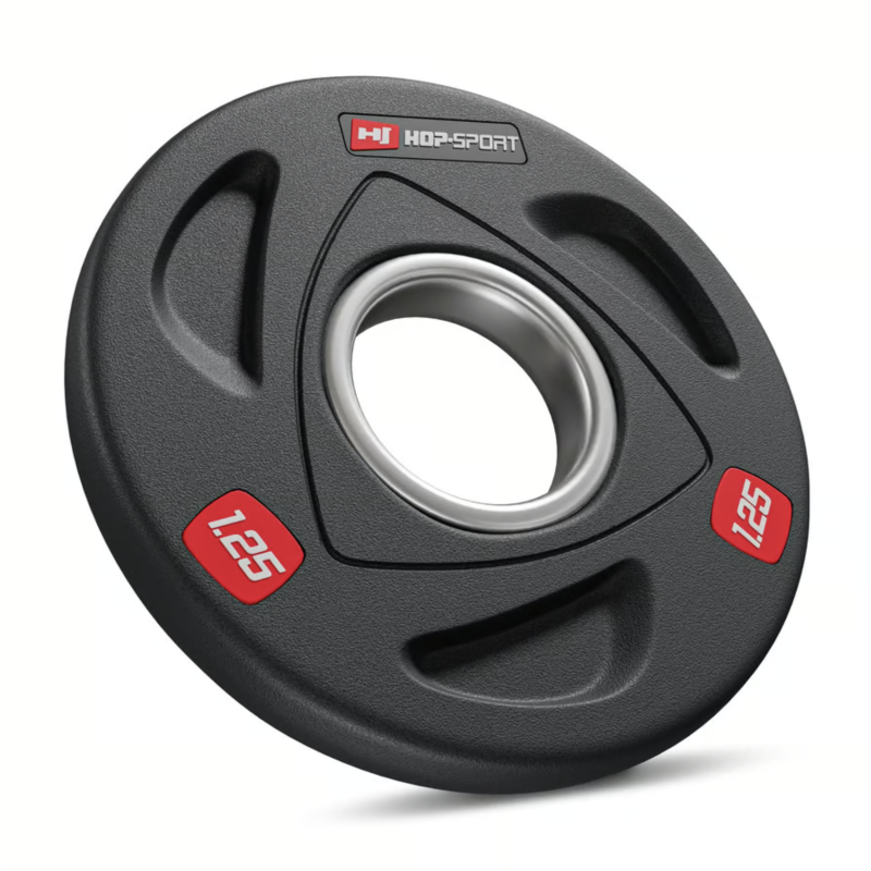 Олимпийские диски 1,25кг изготовлены из прецизионного чугуна, покрыты антискользящим слоем крепкой резины, которая эффективно амортизирует диски при их падении и дополнительно заглушает звуки при падении. Кольцо из нержавеющей стали в центре диска диаметром 51 мм гарантирует им высокую прочность и обеспечивает точную посадку на штангу. Вес вытеснен на дисках, что упрощает их идентификацию, а также специальные пазы уникальной формы, выполняющие роль ручек и повышающие комфорт использования.